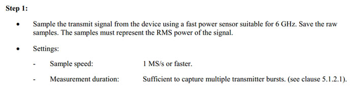 在雷达工作频率低子带区(5,250-5,350MHz),具有TPC功能时要求最大输出功率小于23dBm,没有TPC功能时要求最大输出功率小于20dB。