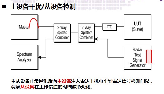 在雷达工作频率高子带区(5,470-5,725MHz),从设备应满足(5,250-5,350MHz)的最低输出功率要求(小于17dBm)。