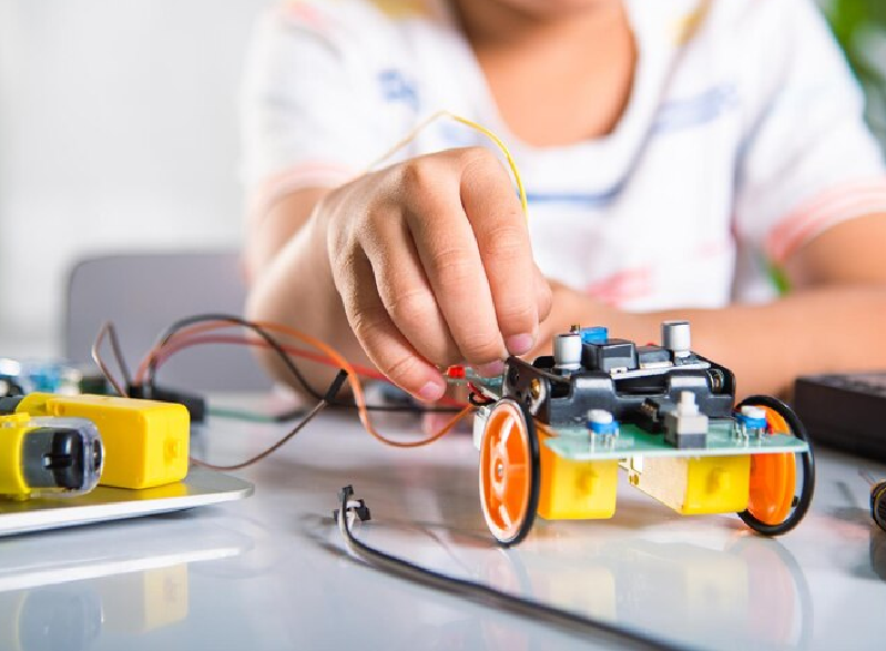 成人装配好后给儿童的玩具:对最终玩具进行测试
