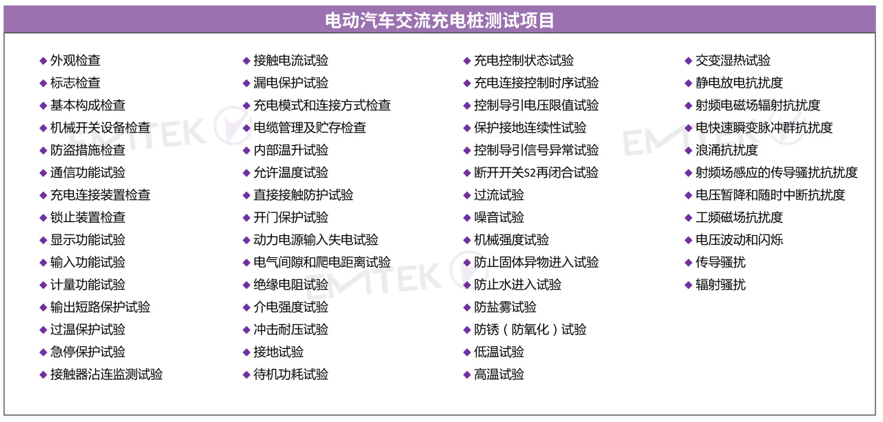 交流充电桩 | NB/T 33002, NB/T 33008.2, IEC/EN 61851-1, GB/T 18487.2, EN IEC 61851-21-2 |