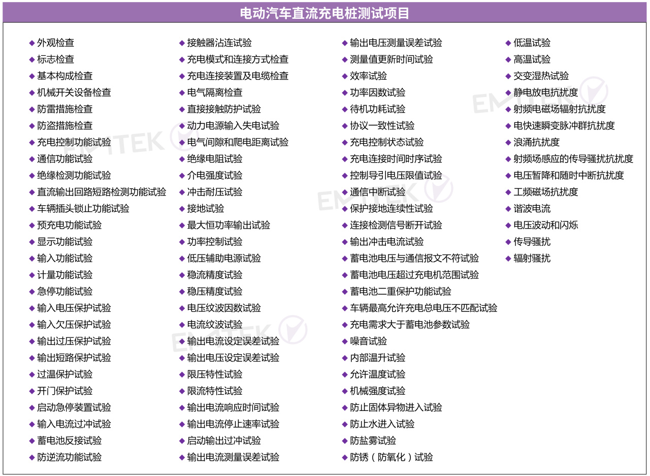 直流充电桩 | NB/T 33001, NB/T 33008.1, GBT 18487.1, IEC/EN 61851-23, IEC/EN 61851-24, IEC/EN 61851-1, GB/T 18487.2, EN IEC 61851-21-2 |