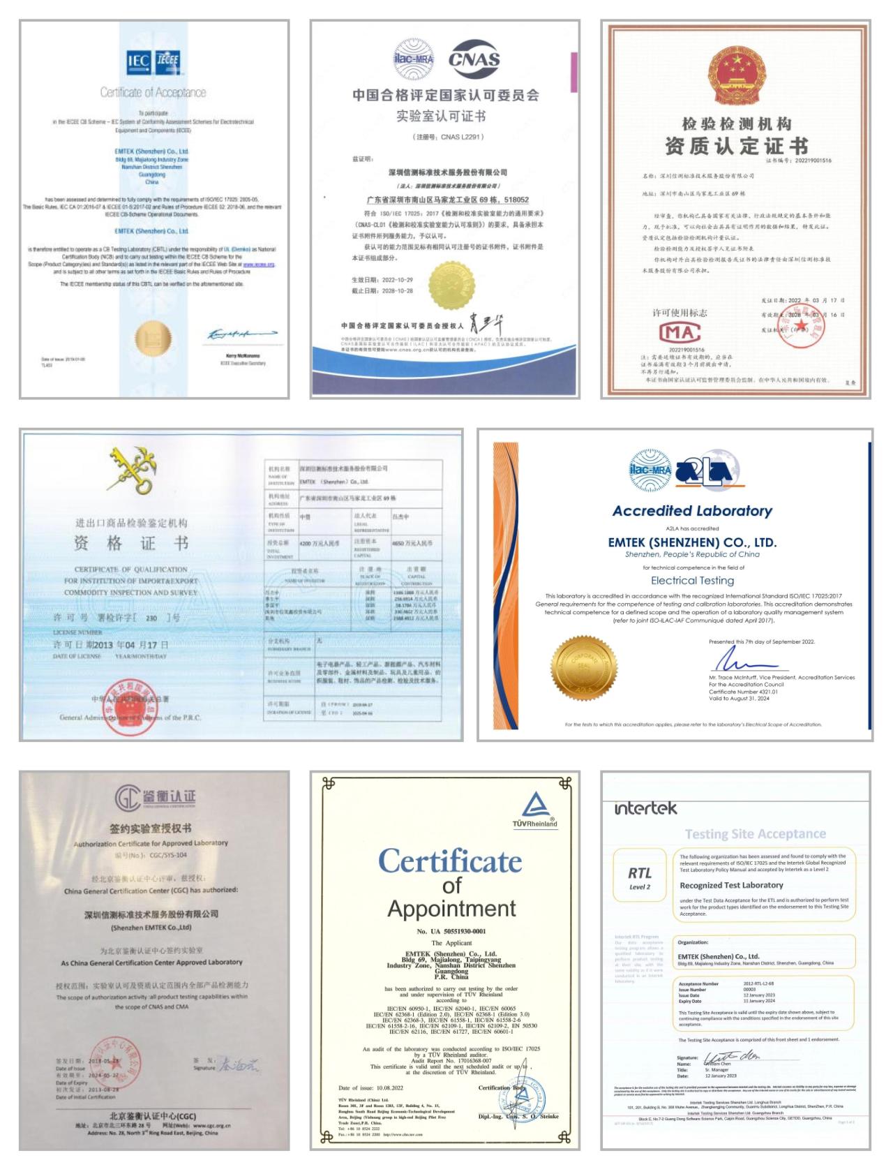 EMTEK亚洲体育博彩平台标准是国内领先的光伏、风电、充电桩和储能的检验检测认证机构之一,新能源实验室检测范围覆盖了光伏设备、储能设备和电动汽车充电桩等,服务内容有产品检测、光伏电站验收、电动车充电站验收、风电场验收等技术服务。作为第三方认证检测服务商,亚洲体育博彩平台标准是“检验检测机构资质认定(CMA)”实验室、“中国实验室国家认可委员会实验室认可(CNAS)”实验室、国际电工委员会(IECEE)CB体系的CBTL实验室,同时还是北京鉴衡认证中心(CGC)、美国UL、英国ITS、德国TUV莱茵、德国BV、加拿大CSA等机构的授权实验室,可以为企业提供国内CGC、CQC认证以及国外CE、CB、UL、ETL、CSA、SAA和并网检测等一站式国际认证服务。