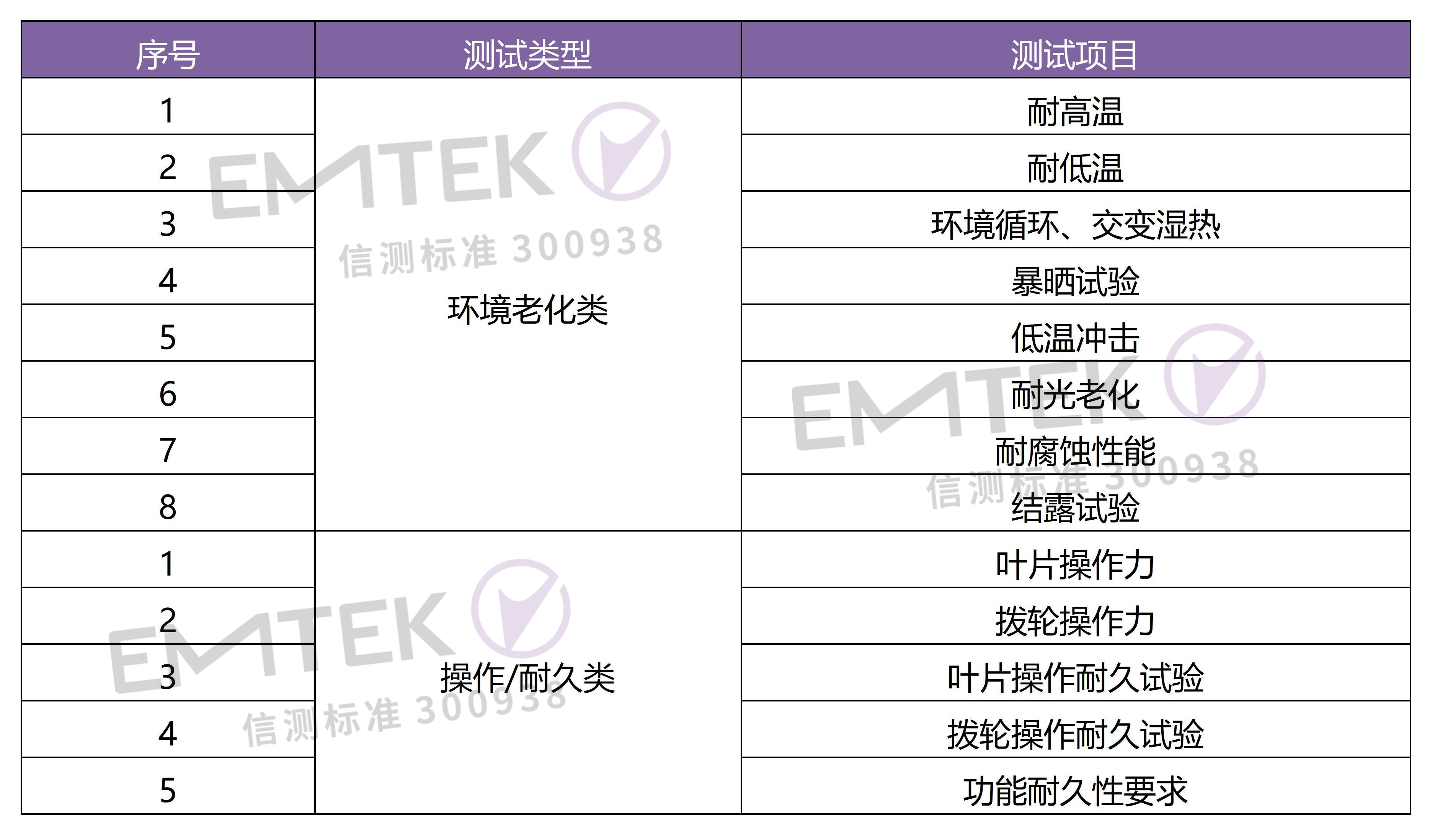 是将产品暴露在自然的或人工的环境条件下经受其作用,以评价产品在实际使用、运输和贮存的环境条件下的性能,并分析研究环境因素的影响程度,包含的环境试验如耐高低温、环境循环、暴晒试验、耐光老化、耐腐蚀性能等;