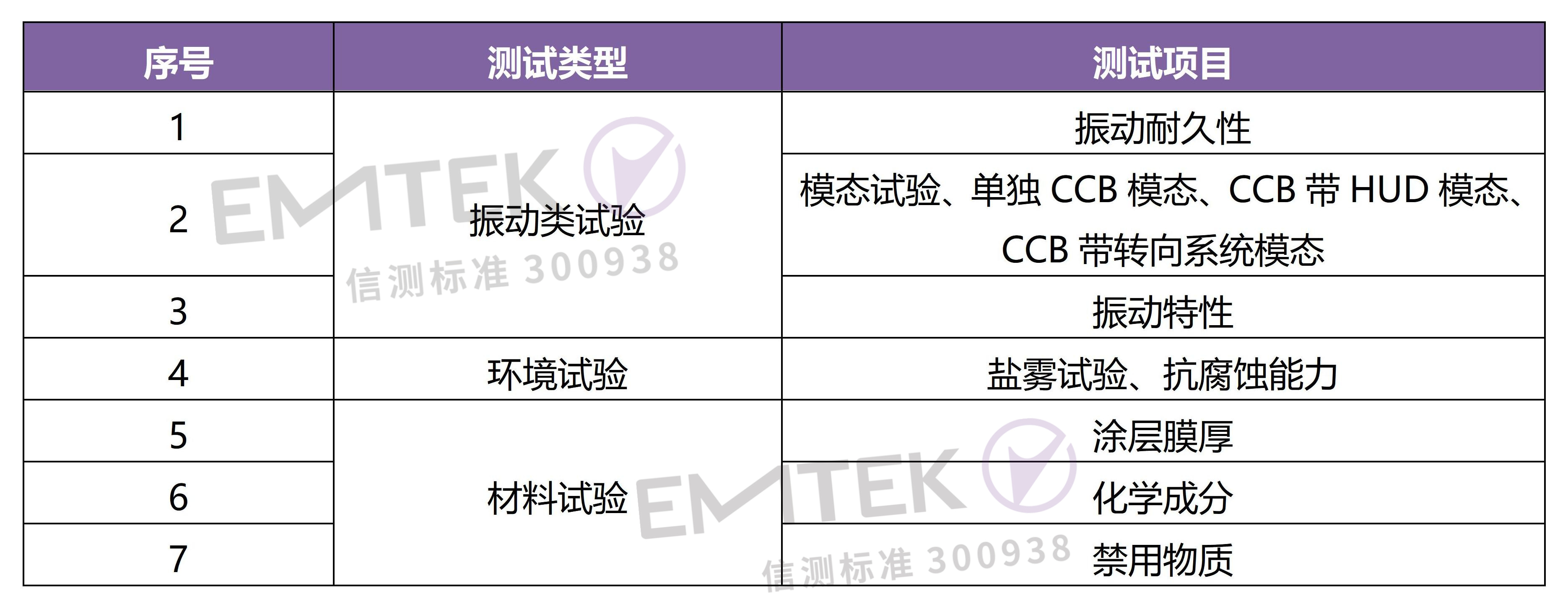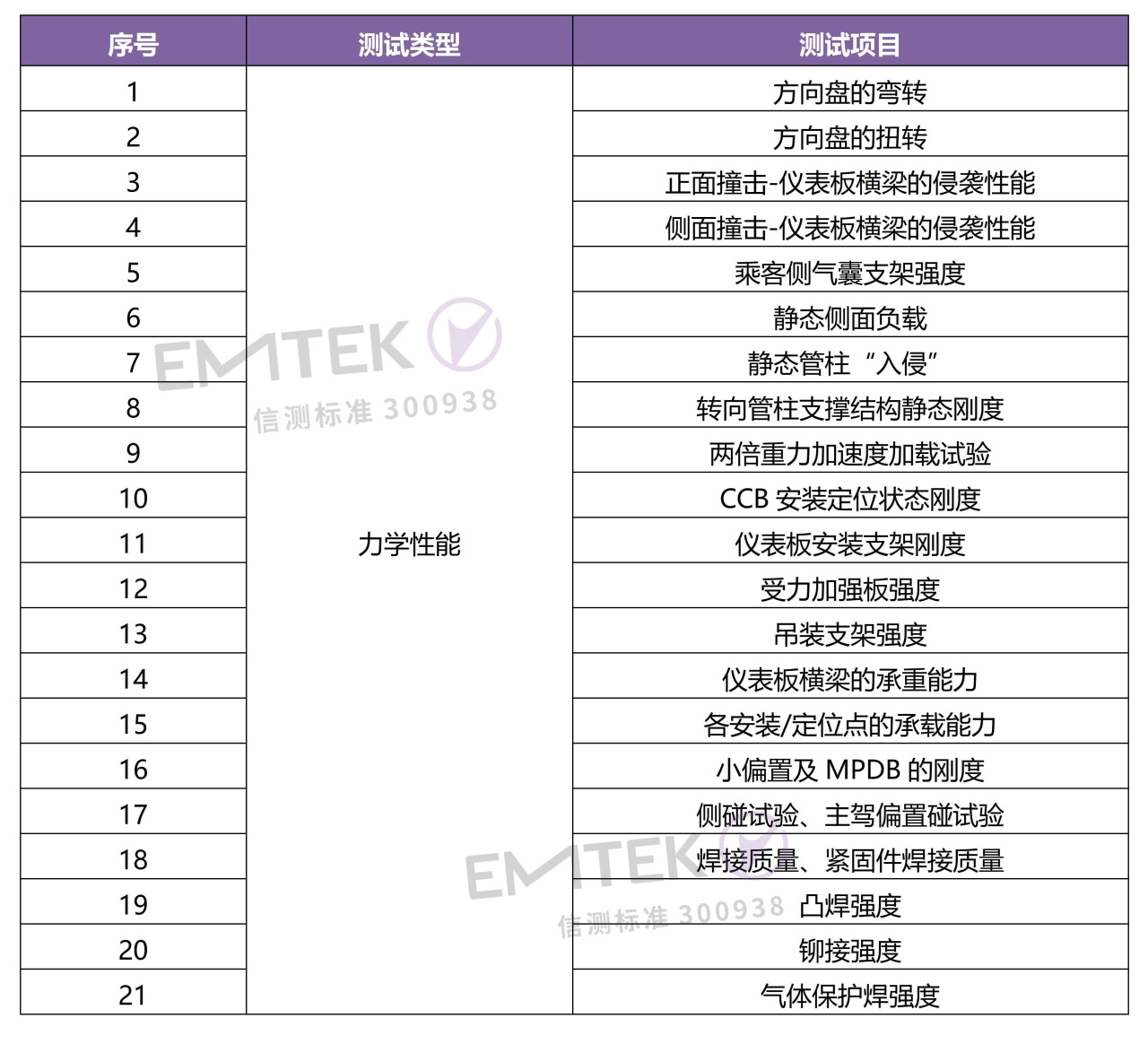 乘客侧气囊支架强度,静态侧面负载、各安装/定位点的承载能力、侧碰试验等;