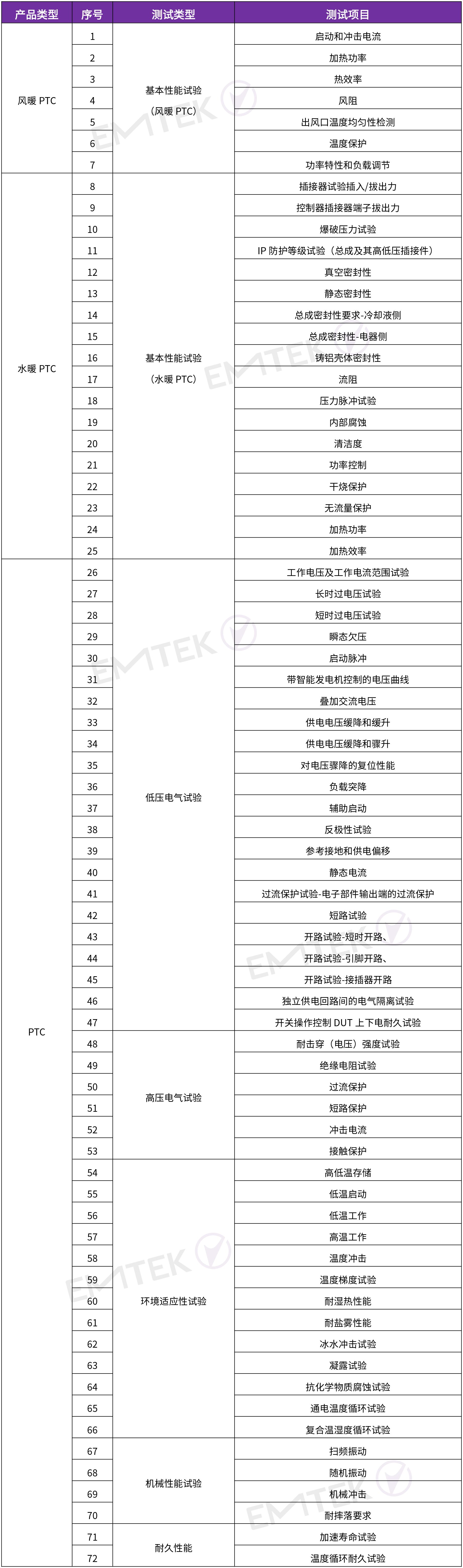检测并评价产品在不同环境负荷条件下的功能和性能表现,包括高低温存储、低温启动、低温工作、高温工作、温度冲击、温度梯度试验、耐湿热性能、耐盐雾性能、温湿度循环试验、冰水冲击试验、凝露试验、抗化学物质腐蚀试验等。
