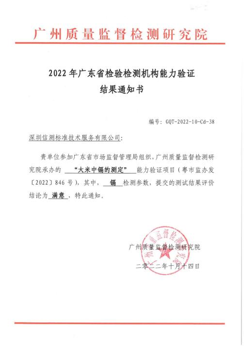 近日,在由广东省市场监督管理局组织、广州质量监督检测研究院承办的“2022广东省检验检测机构能力验证”中,亚洲体育博彩平台标准参加的“大米中镉、异丙威和杀螟硫磷的测定”食品检测领域3个能力验证项目,均获得“满意”!