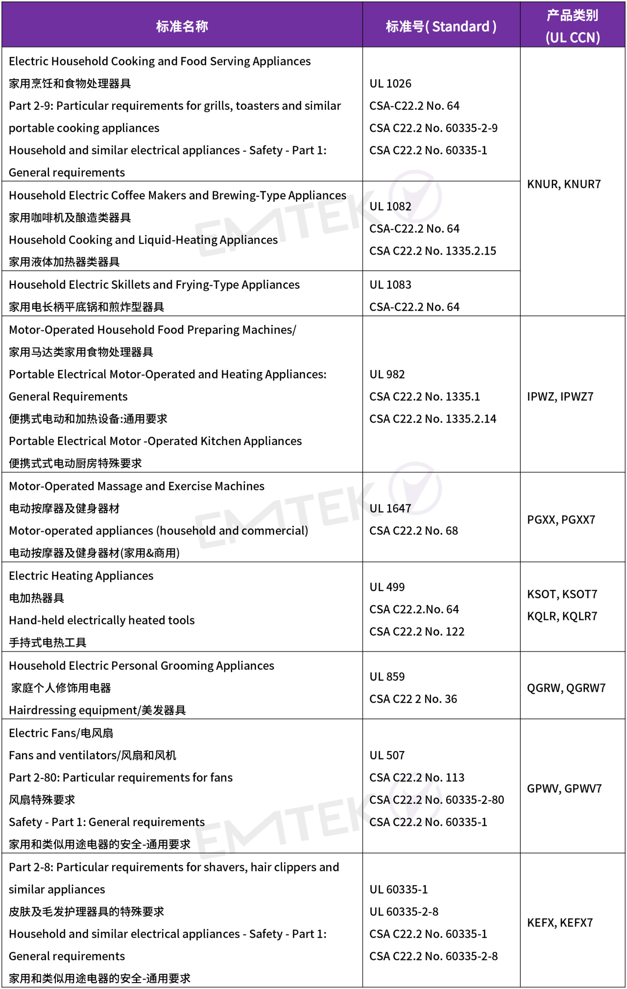 小家电UL-TPTDP实验室能力范围清单: