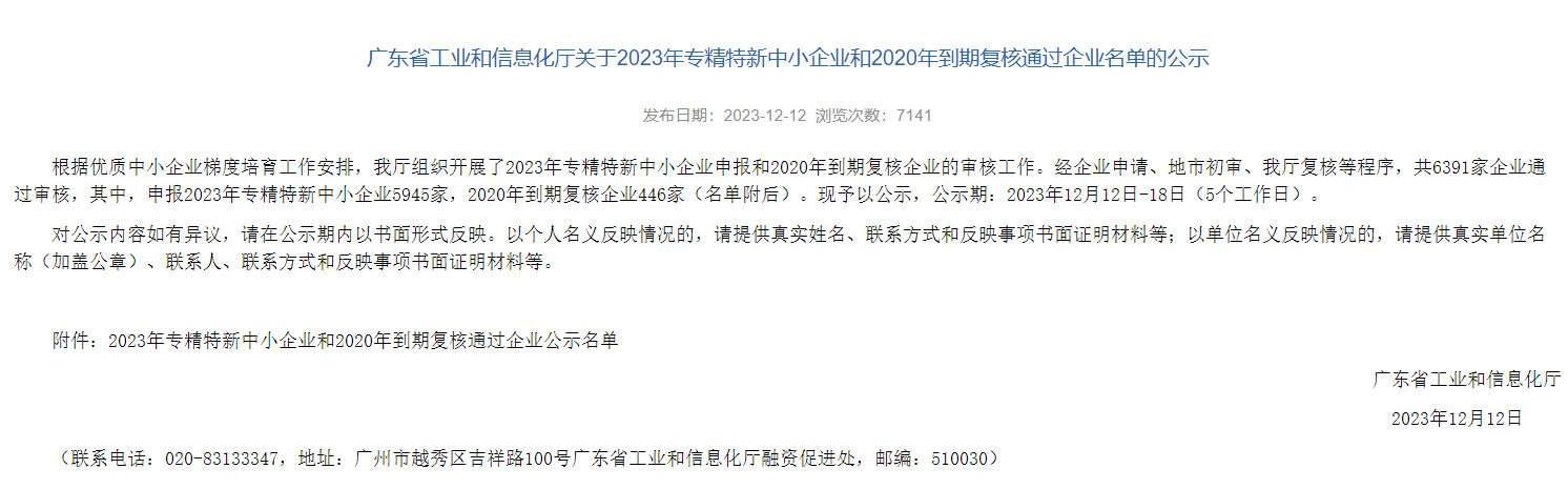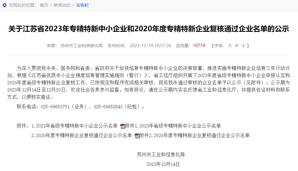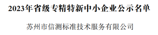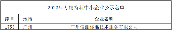 近日,广东省工业和信息化厅和苏州市工业和信息化局分别发布《广东省工业和信息化厅关于2023年专精特新中小企业和2020年到期复核通过企业名单的公示》和《关于江苏省2023年专精特新中小企业和2020年度专精特新企业复核通过企业名单的公示》,经过相关审核,凭借在检测领域持续创新和优质技术水平等优异表现,博彩平台排名标准广州公司、苏州公司成功入选,被授予“广东省2023年专精特新中小企业”和“江苏省2023年专精特新中小企业”称号。