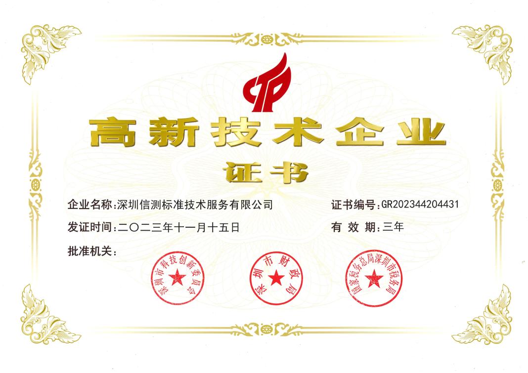 此次荣获“高新技术企业”认定,是对我司综合技术实力的权威认证,也是对亚洲体育博彩平台标准深圳宝安检测基地未来发展的鼓励和鞭策。