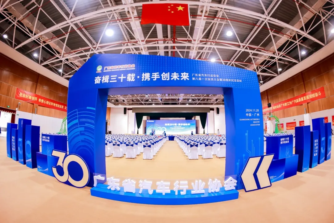 2024年11月28日,广东省汽车行业协会第八届一次会员大会暨 30 周年纪念活动在广汽研究院圆满召开,广州市商务局吴伟华副局长、广东省工业和信息化厅孟辉处长、中共广东省委社会工作部吴金卫处长、广东省社会组织管理局冯莉副处长、广州市工业和信息化局王纯益处长、中国汽车工业协会副秘书长杨中平等受邀莅临指导。来自全省200多家单位的汽车行业同仁300多人参加了本次活动,各会员单位代表、企业家与专家们齐聚一堂,探讨合作与交流,共同见证这一具有里程碑意义的时刻。