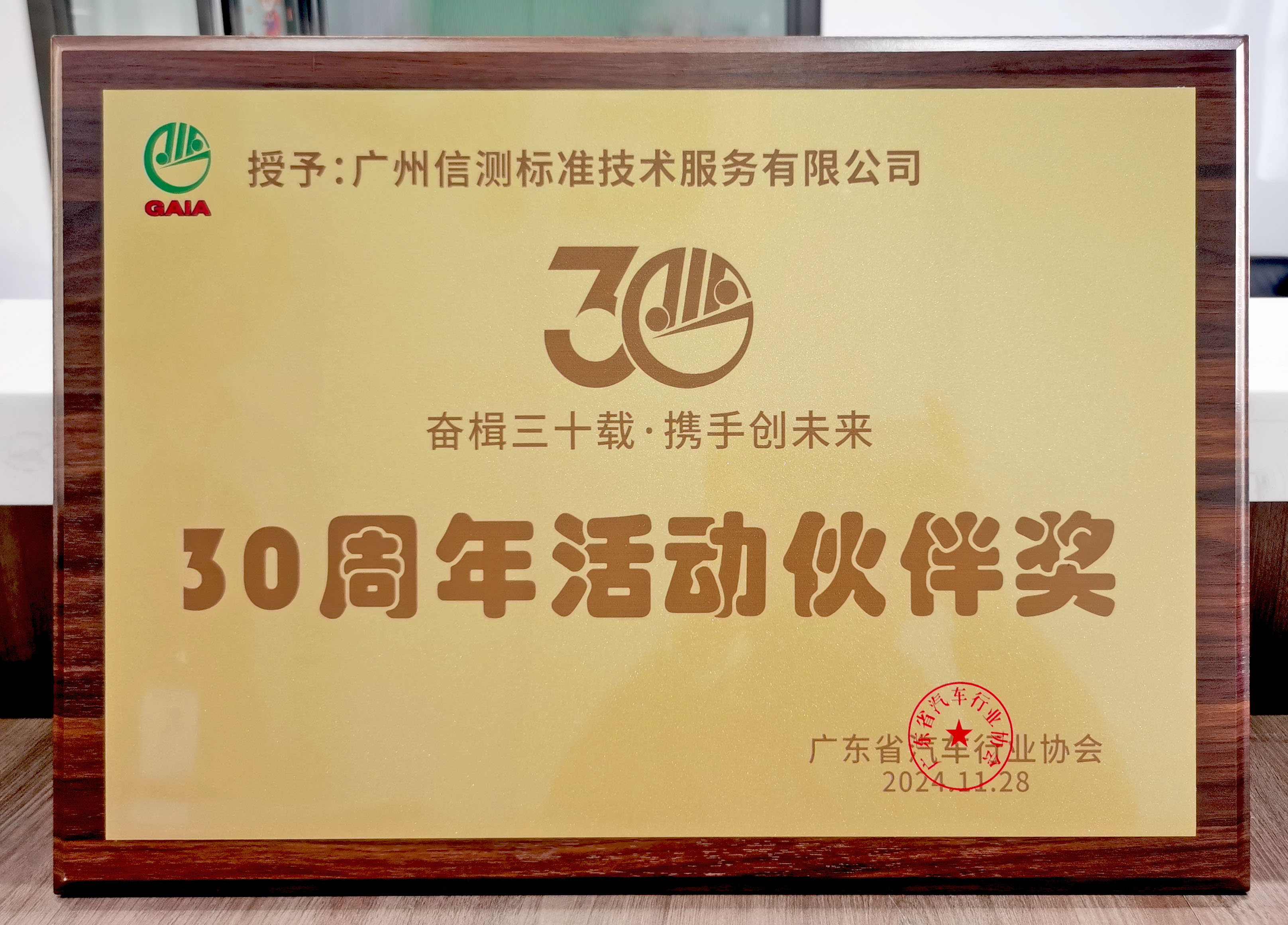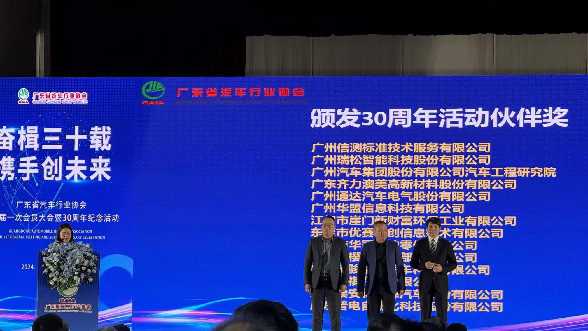 大会现场,亚洲体育博彩平台标准获颁30周年活动伙伴奖,并被授予了广东省汽车行业协会第八届理事会理事单位荣誉牌匾。这是对过去亚洲体育博彩平台标准为广东省汽车行业发展所做努力的认可和肯定,更是对未来亚洲体育博彩平台标准助推汽车产业链及新能源产品检验检测服务实现更高质量发展的期许。