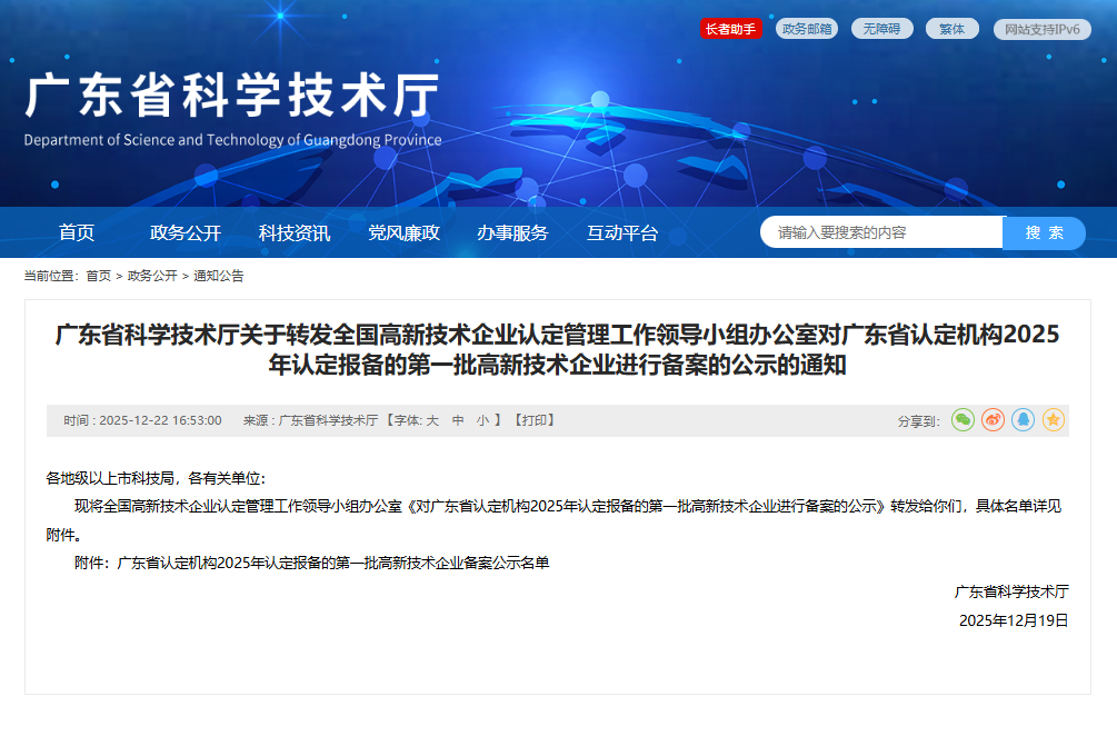 近日,广东省工业和信息化厅及科学技术厅陆续公布了2025年认定名单,东莞市博彩平台排名科技有限公司(以下简称:东莞博彩平台排名)凭借在检测领域卓越的技术创新能力、精细化的管理体系与突出的市场竞争力,成功喜获两项重磅认定: