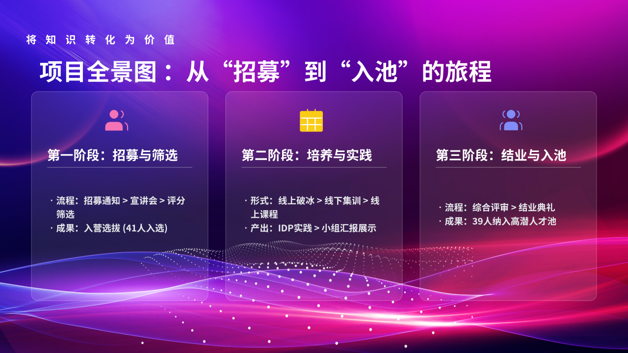 从培养模式上,本次项目通过“测评、集训、岗位实践”等形式,注重发挥团队的共创与融合能力,已经形成标准化和可落地的、可复制的培养模式,为未来人才培养工作打下良好基础;