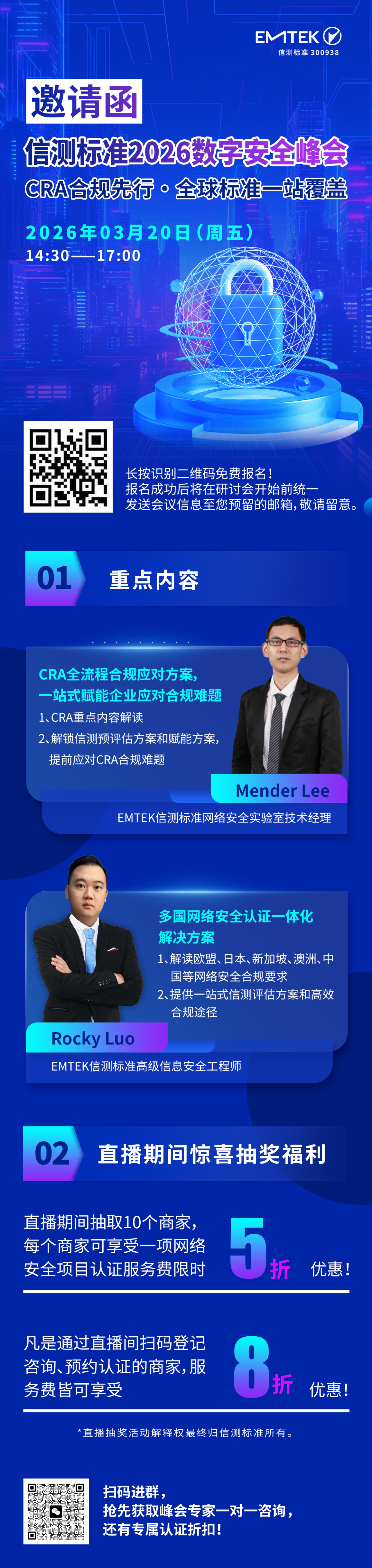 报名开启!3.20数字安全峰会:CRA合规先行・全球标准一站覆盖,助您产品无忧出海!