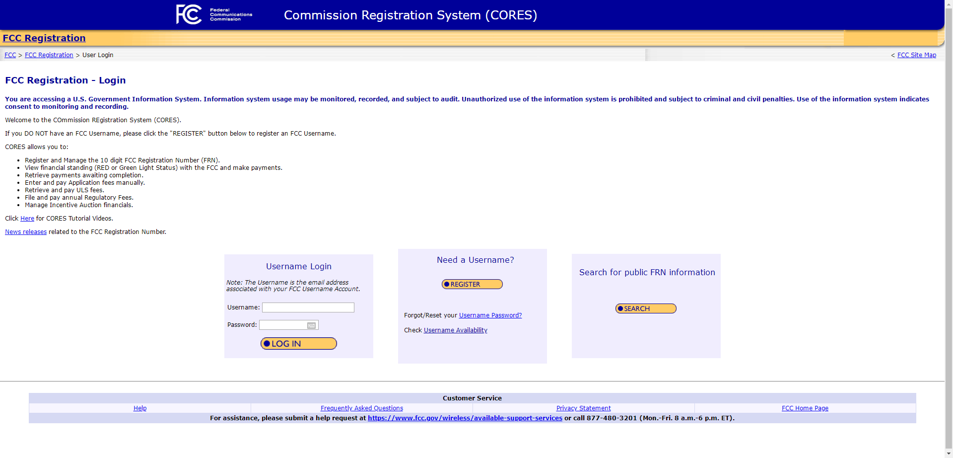 美国FCC发布DA 22-508号公告,将于2022年7月15日关闭旧的FRN注册系统the legacy Commission Registration System(CORES),开始使用新版本的系统(CORES2)。差异主要在于新版本的系统要求用户缴纳年费。