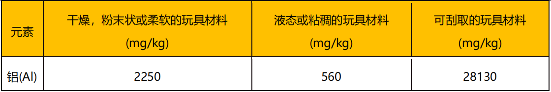 关于铝的新限值将于 2022 年 12 月 15 日生效。该修订不适用于在 2022 年 12 月 15 日前投放英国大不列颠市场的玩具。