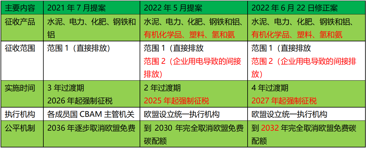 此次议会通过的修正案,在征收产品范围、排放类别与此前 5 月的提案相比并无增改,从欧盟过往立法情况来看,最终欧盟碳关税法律文本极可能与此次欧洲议会通过的最新修正案一致。