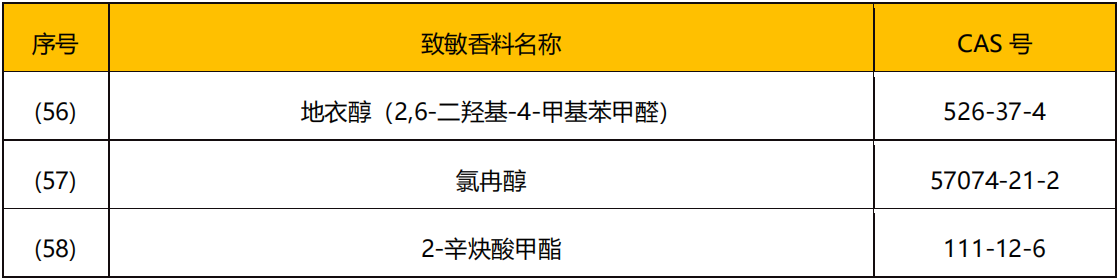 (3)a. 修改附表 2 第 3 部分第 11 点的第一个表格(禁用致敏香料),增加以下三项: