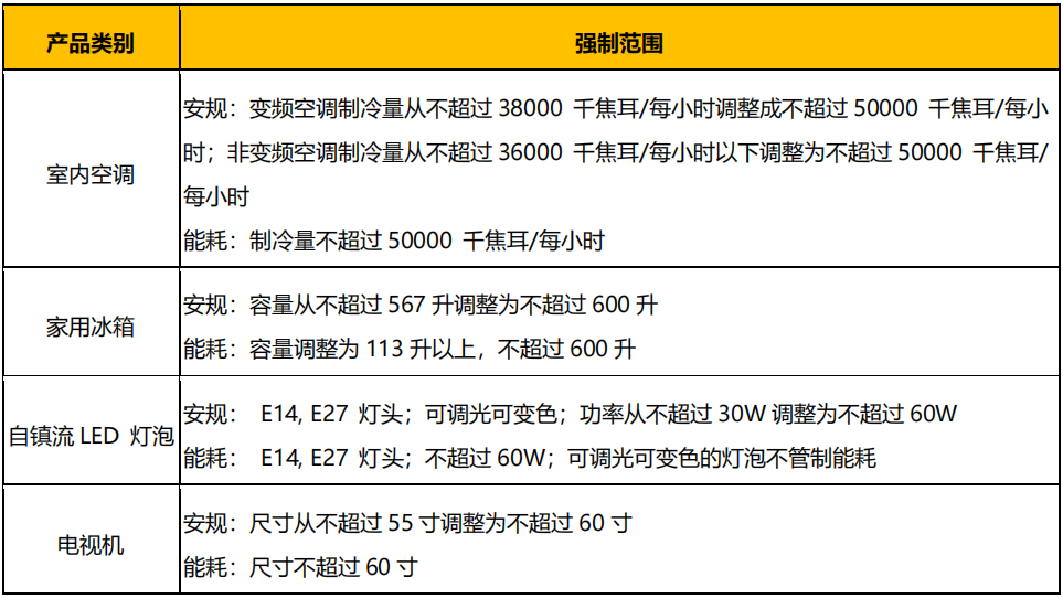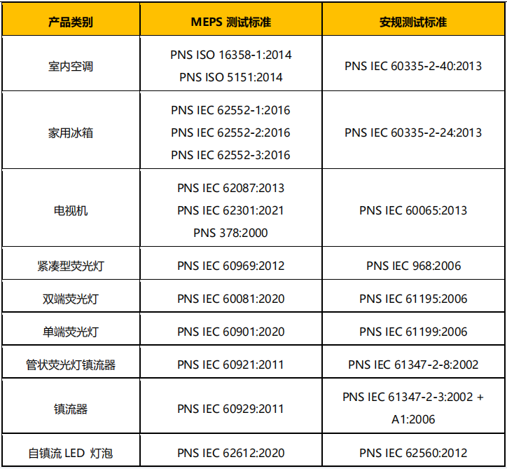 1. 该法令覆盖的产品范围如下表,PS 标志证书或者 ICC 许可证只能在产品同时满足安规和 MEPS 标准的情况下签发(下表标准版本为本稿件发布时现行版本)。