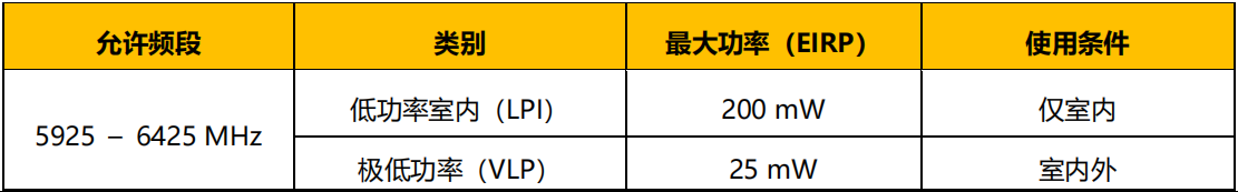 (3)在 5925-7125 MHz 的室内 AP 控制下运行的 client 设备,最大 e.i.r.p.不应超过 24dBm。