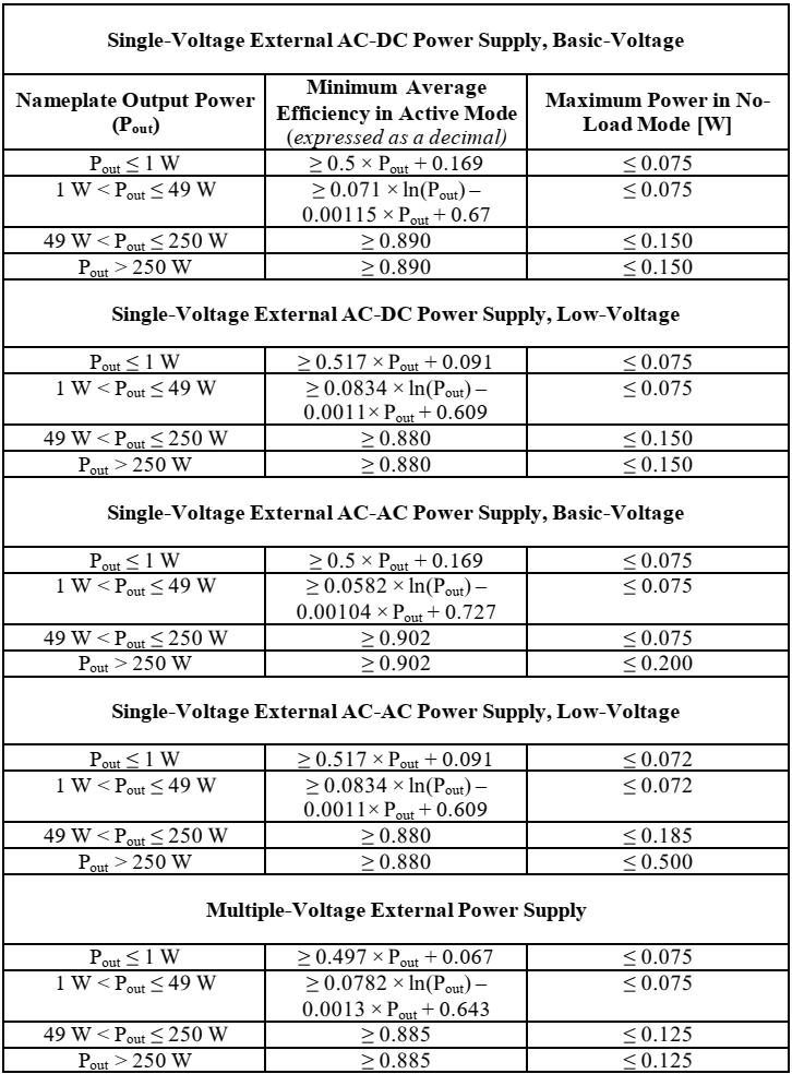 • 所有在最终法规发布后2 年当天或之后制造的外部电源,应符合以下VII 级标准;