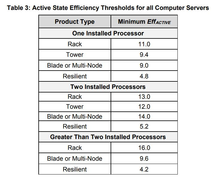 4.0 版本中对于非大容量服务器的活动状态效率阈值要求: