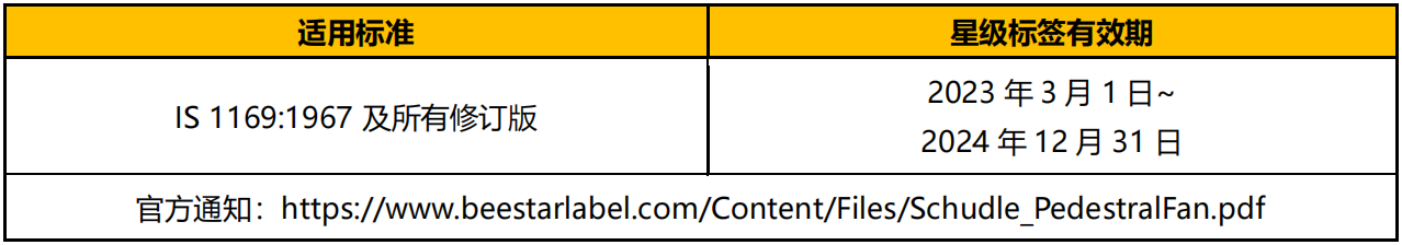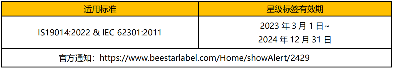 自2024 年1 月1 日起,冰箱,电视机,LED 灯泡,CFLi 的现行测试标准将被下列适用新标准所取代,如下表所示。生效日之后,所涉及的受管制货物的新注册和续期注册,应按照修订后的测试标准进行测试: