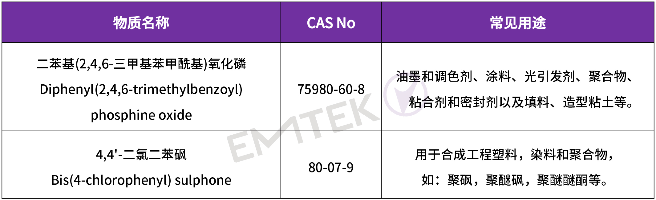 2023年6月14日,欧洲化学品管理局(ECHA)正式将以下两项物质纳入第29批SVHC物质清单。至此,SVHC清单物质由原来的233项增加至235项。去年评议通过的间苯二酚,此次暂时也没纳入。