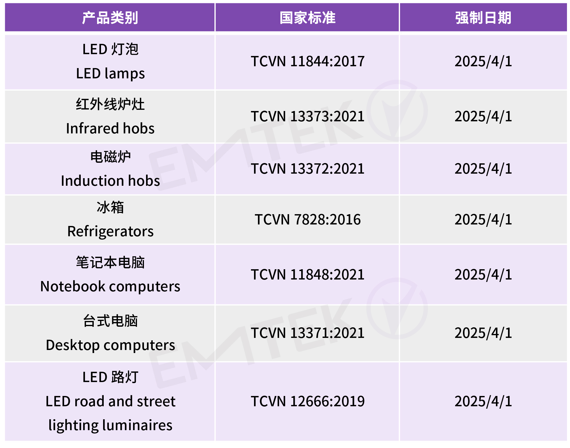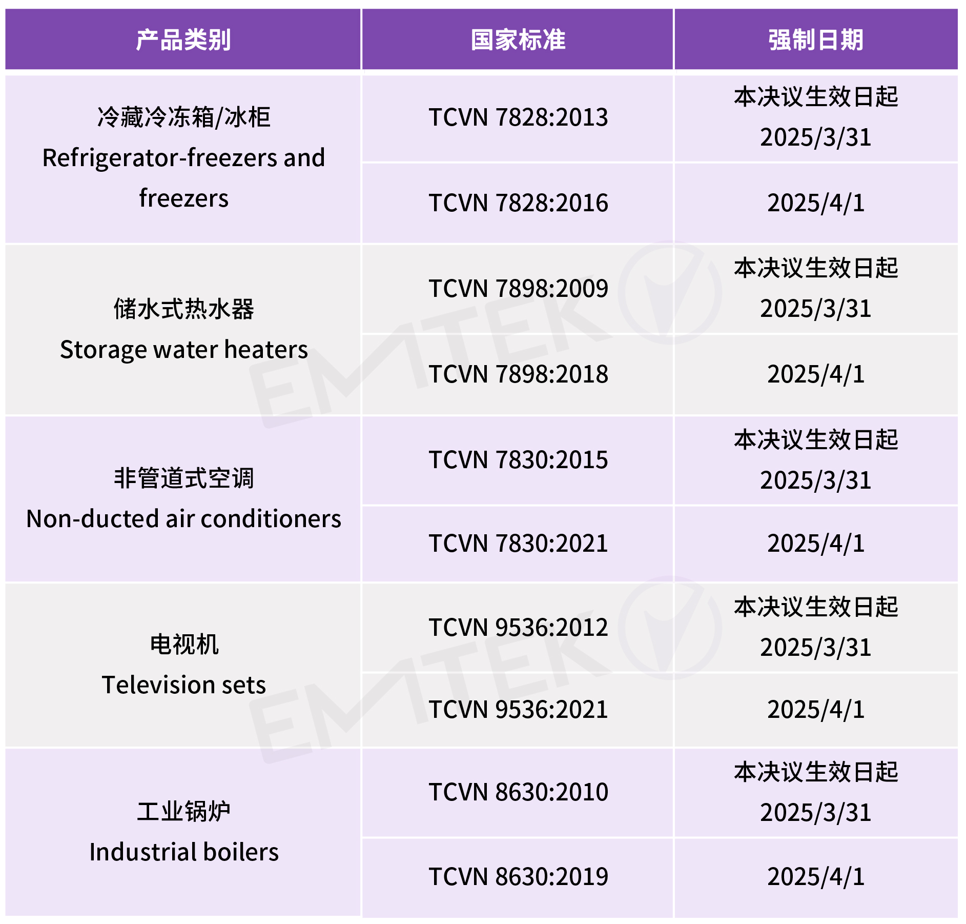 更新目前已列管的五类产品能效标准,将于2025 年 4 月1 日强制实施最新版。