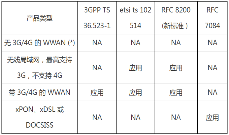不过,对于主机软件/固件已完全或部分采用IPv6 协议的产品(如在操作系统中采用),则需要重新执行所有IPv6 测试。在测试方面,与实际 IPv6 要求相比,新法案的主要变化是用RFC 8200 取代了 RFC 2460 标准。其他测试要求保持不变。下表列出了每种技术所需的IPv6 标准: