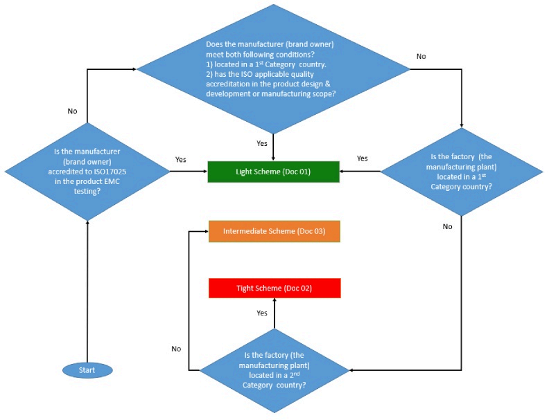 埃及国家电信管理局(NTRA)于2023 年 5 月底在TRA 官网更新了认证模式及流程图。NTRA 的认证依据制造商来确定适用模式,针对品牌制造商所在下列地区分别适用NTRA 三种认证模式:Light, Tight 及Intermediate Scheme。