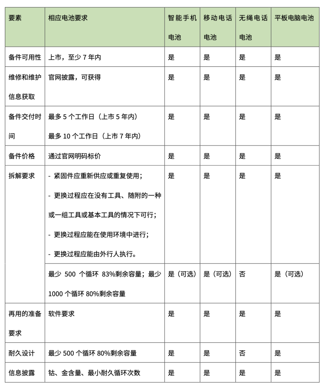 2. 法规针对的对象是智能手机等终端,是否可以同时考虑电池?
