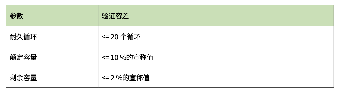 答:这部分法规规定了市场监管中对抽查样品进行验证时,允许验证数据与宣称数据之间存在一定程度的偏差。例如,如果宣称电池剩余容量为 82%,耐久循环次数为 1000 次,而验证数据为 990 次,则市场监管结果认为该电池是合规的。