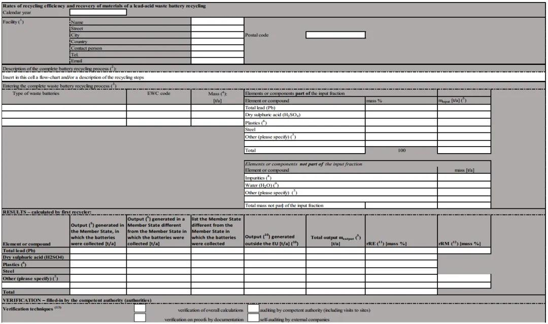 该法案详细规定了电池回收效率和材料回收率的计算文件填报方法,并为铅酸废电池、锂基废电池、镍镉废电池、其他废电池分别设定相应的文件格式。