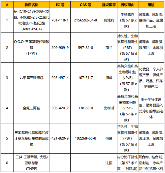 欧盟:6 项新物质将于 2025 年 1 月加入 SVHC 高度关注物质清单