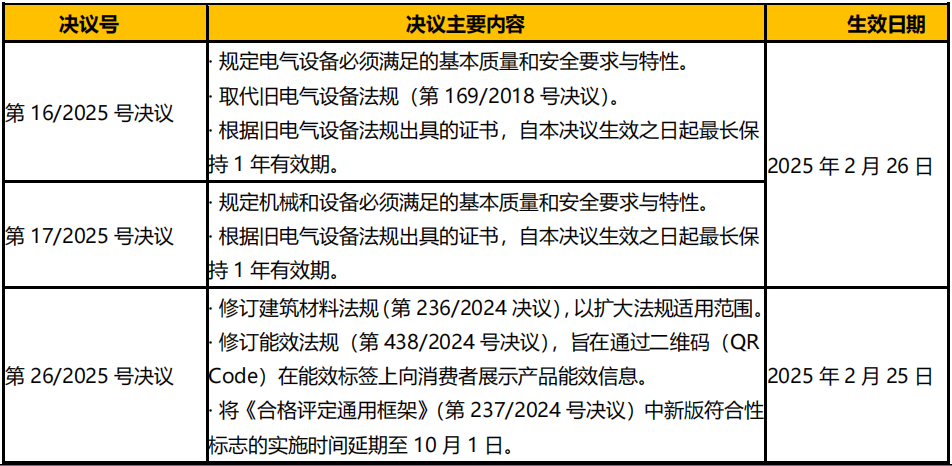 阿根廷工商秘书处于 2025 年 2 月 25 日发布多项安全和能效相关决议,见表 1:
