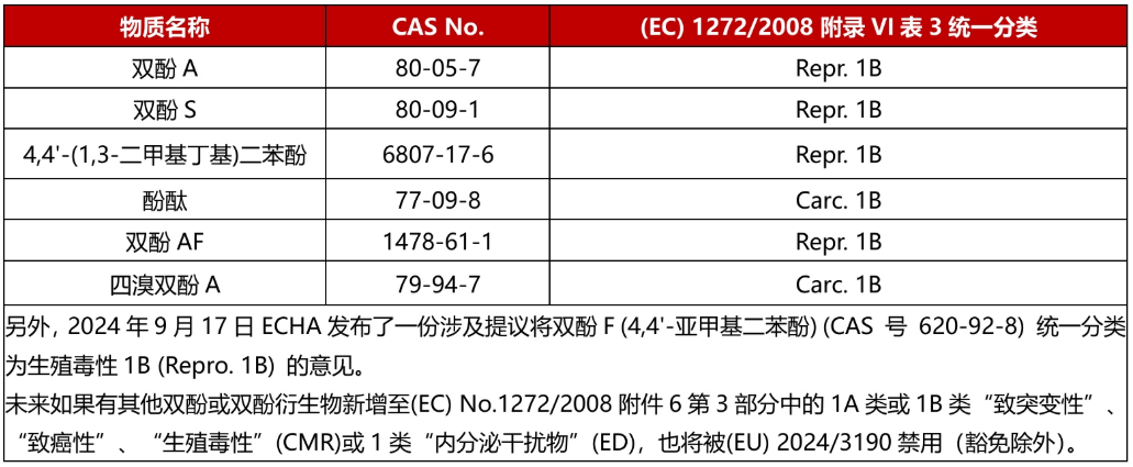 欧盟发布(EU) 2024/3190双酚禁令的实施指南文件