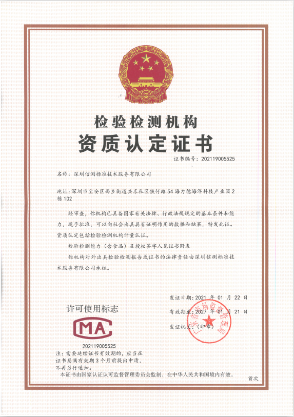 Qualifications of Dongguan Lab