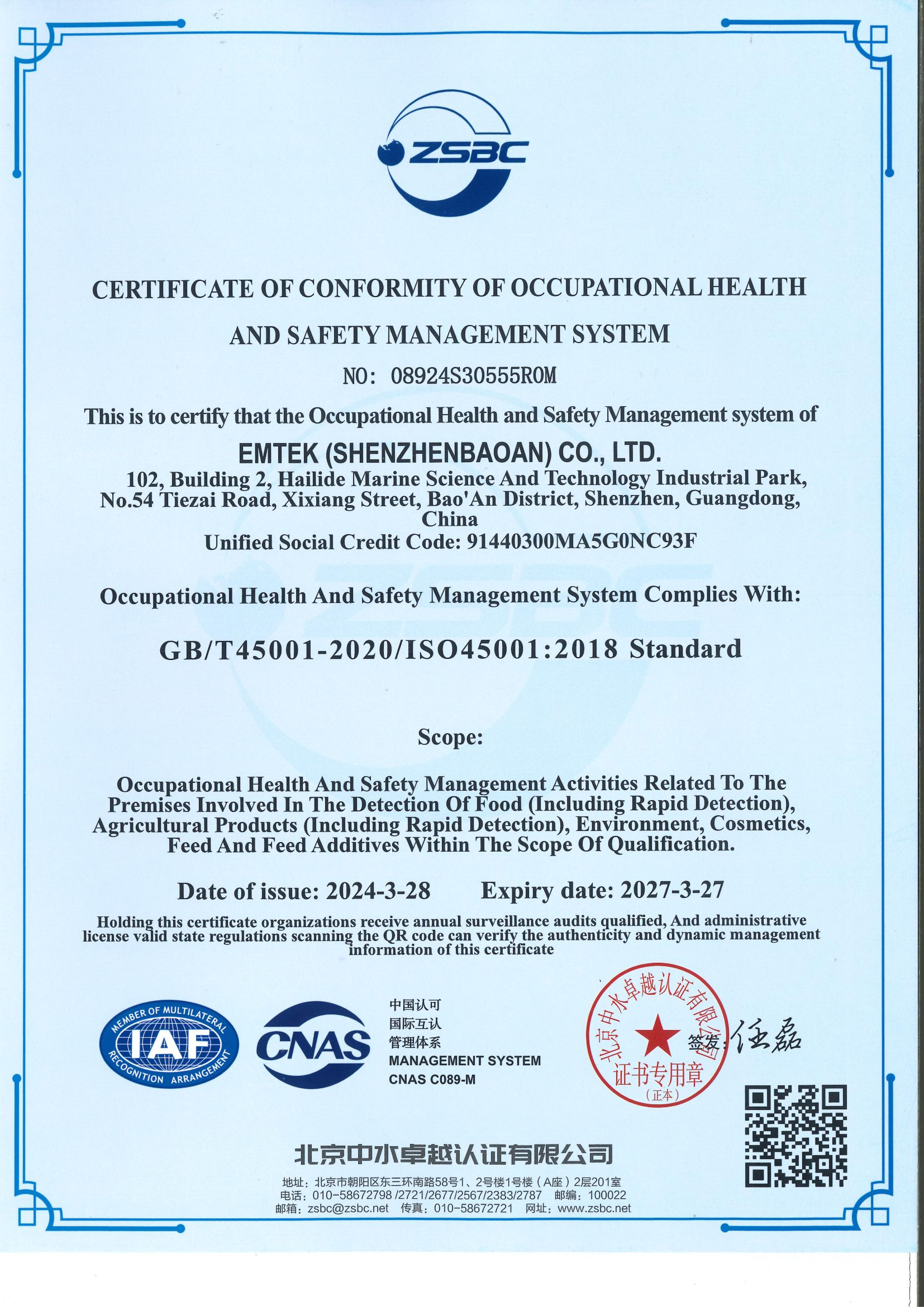 Qualifications of Suzhou Lab